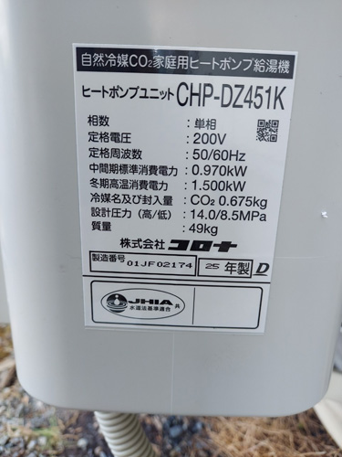 海老名市 コロナ自然冷媒CO2家庭用ヒートポンプ給湯機貯湯ユニットCTU-37AZ1K、ヒートポンプユニットCHP-DZ451K エコキュート交換工事