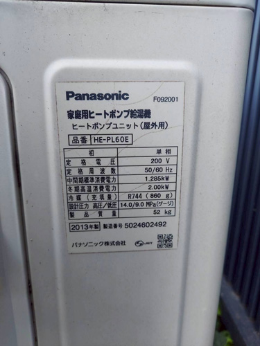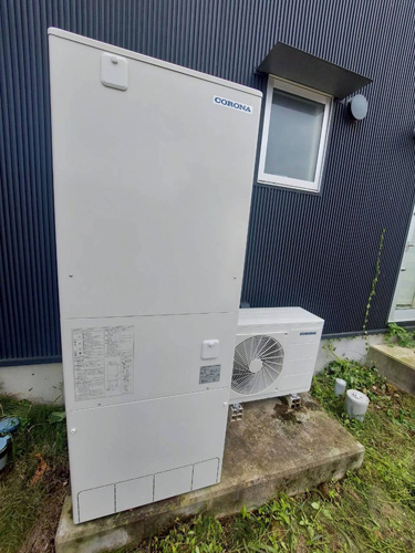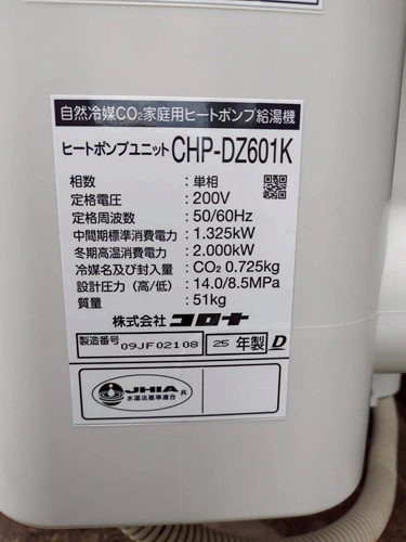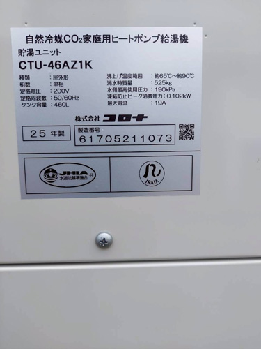 厚木市中町 パナソニック家庭用ヒートポンプ給湯機ヒートポンプユニット(屋外用)HE-PL60E→コロナ自然冷媒CO2家庭用ヒートポンプ給湯機ヒートポンプユニットCHP-DZ601K、貯湯ユニットCTU-46AZ1K エコキュート交換工事